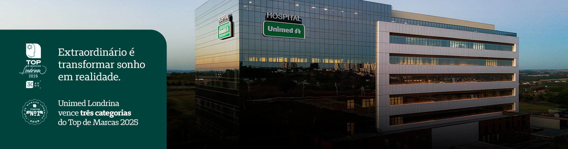 As conquistas da Unimed Londrina no Top de Marcas 2025 reafirmam o compromisso da cooperativa com a saúde. São 30 anos de liderança absoluta como o plano de saúde mais lembrado e 54 anos dedicados ao cuidado da população londrinense. Ao longo dessa trajetória, a Unimed segue inovando e oferecendo atendimento de excelência, com a qualidade e a dedicação que caracterizam o jeito Unimed de cuidar.